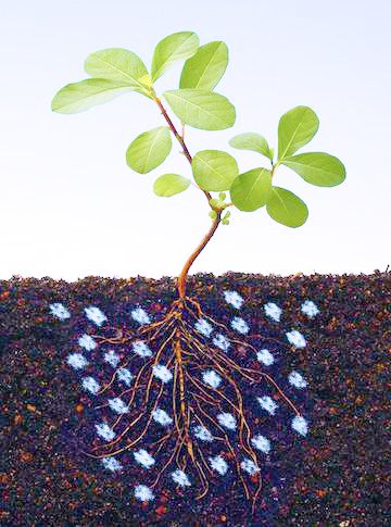 2. Gabungkan Be-Grow Hydrogel kering dengan teliti ke dalam tanah sekeliling.